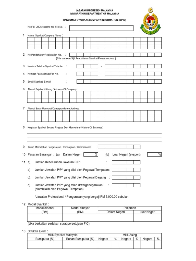 . It is compatible with half-damper capable keyboards and it can also serve as a standard pedal switch for sustain etc. Tarikh Masuk Malaysia Date Of Entry To Malaysia. BORANG DP10 JABATAN IMIGRESEN MALAYSIA 1 Nama dan Nombor Pendaftaran Syarikat.
